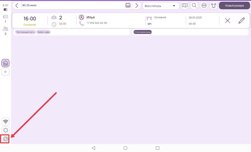Принудительная синхронизация выполняется в случае, когда необходимо, чтобы все бронирования сохранились на сервер, например это важно перед переустановкой приложения Reservista на планшете.