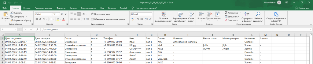 В личном кабинете, во вкладке «Резервы» есть возможность выгрузить всю информацию о резервах за конкретный период в формате таблицы Excel. Для этого выберете даты начала и конца отрезка времени, за который необходимо выгрузить резервы и после нажмите на кнопку «Экспорт» в верхнем правом углу экрана — сформированная таблица Excel сохранится на устройство.
