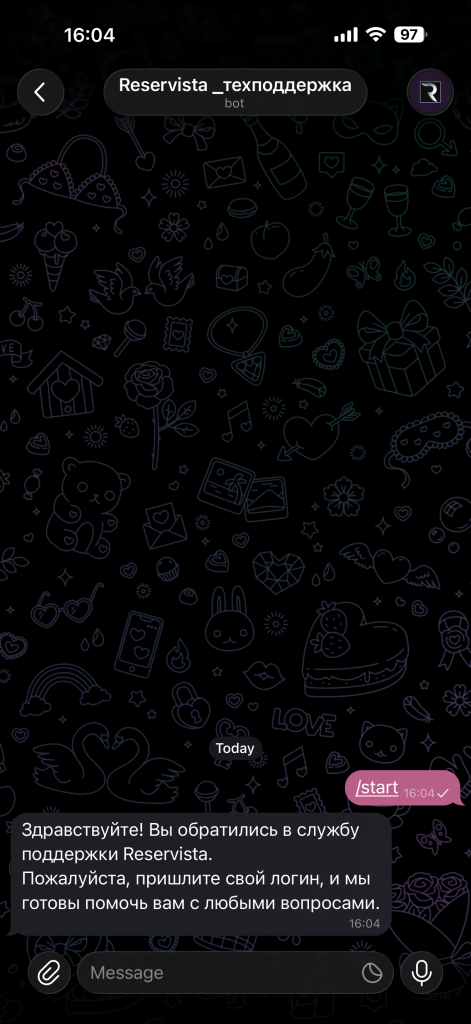 Наша техническая поддержка находится в Telegram-боте по ссылке: https://t.me/reservista_support_bot и доступна 24/7. Логин Вашего ресторана для бота технической поддержки указан в Вашей инструкции-памятке. Напоминаем, что в этом же документе также прописаны Ваши данные для входа в личный кабинет Reservista на сайте и логин хостес в приложение.